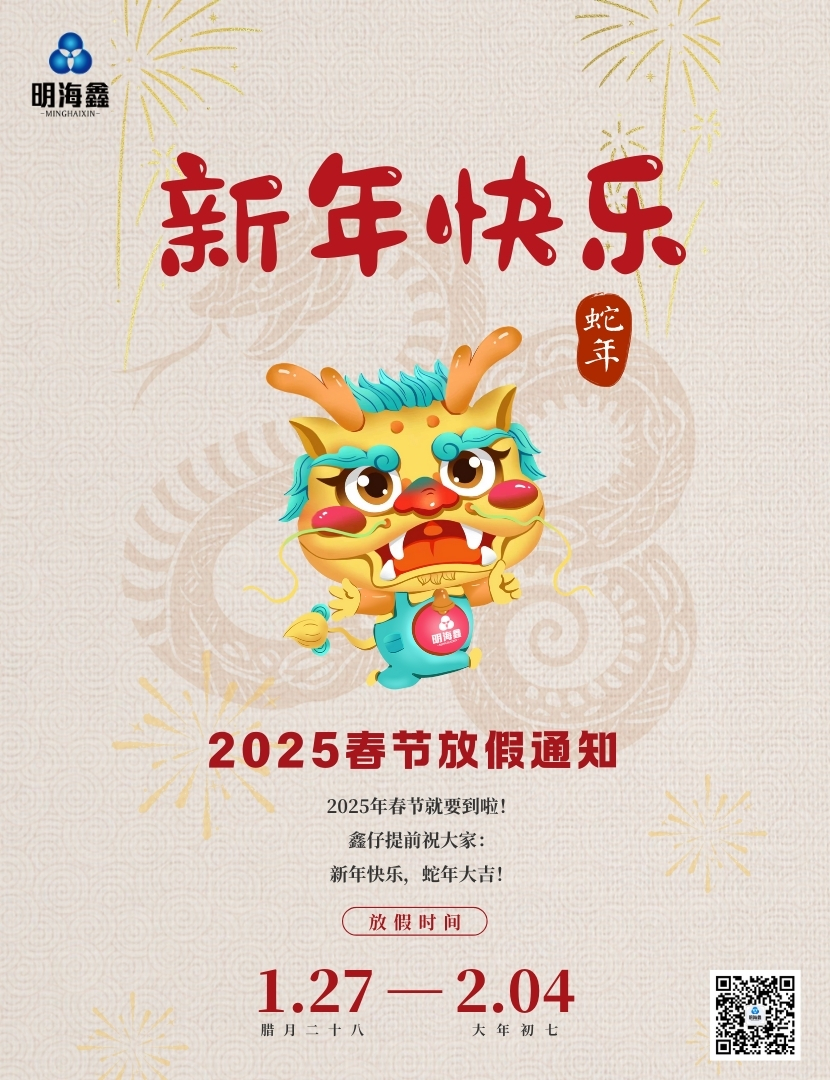 明海鑫春節(jié)放假通知、提前祝大家春節(jié)快樂(lè)!