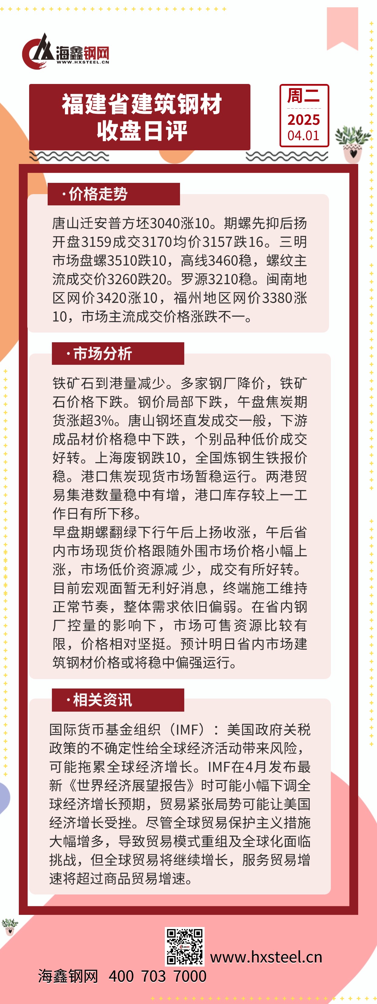 4月1日福建省內建筑鋼材收盤日評