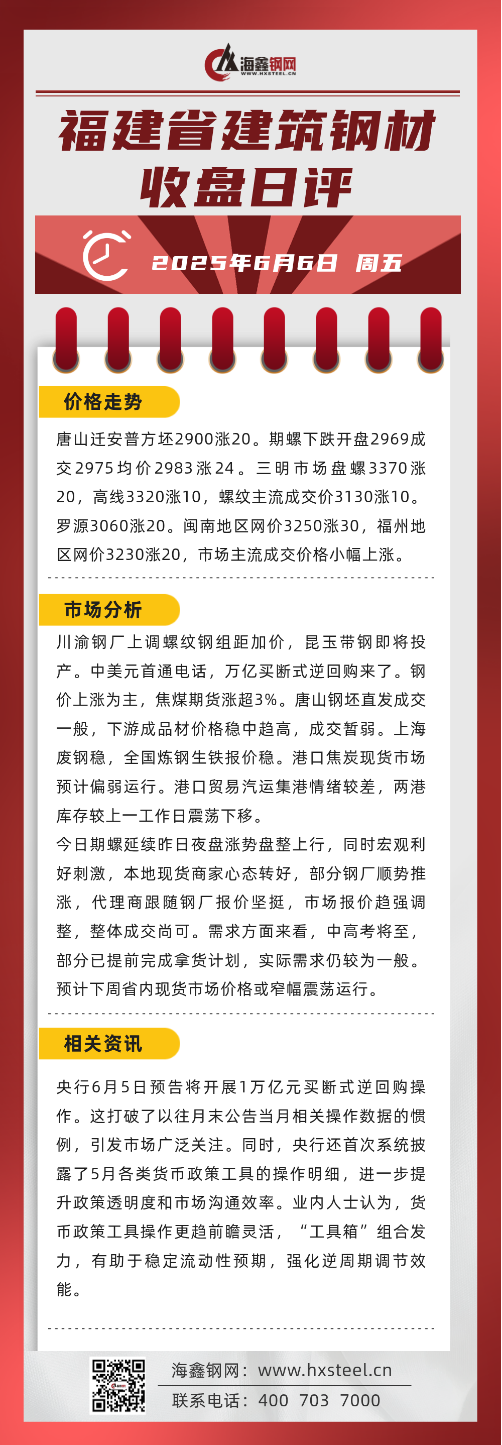 6月6日福建省內建筑鋼材收盤日評