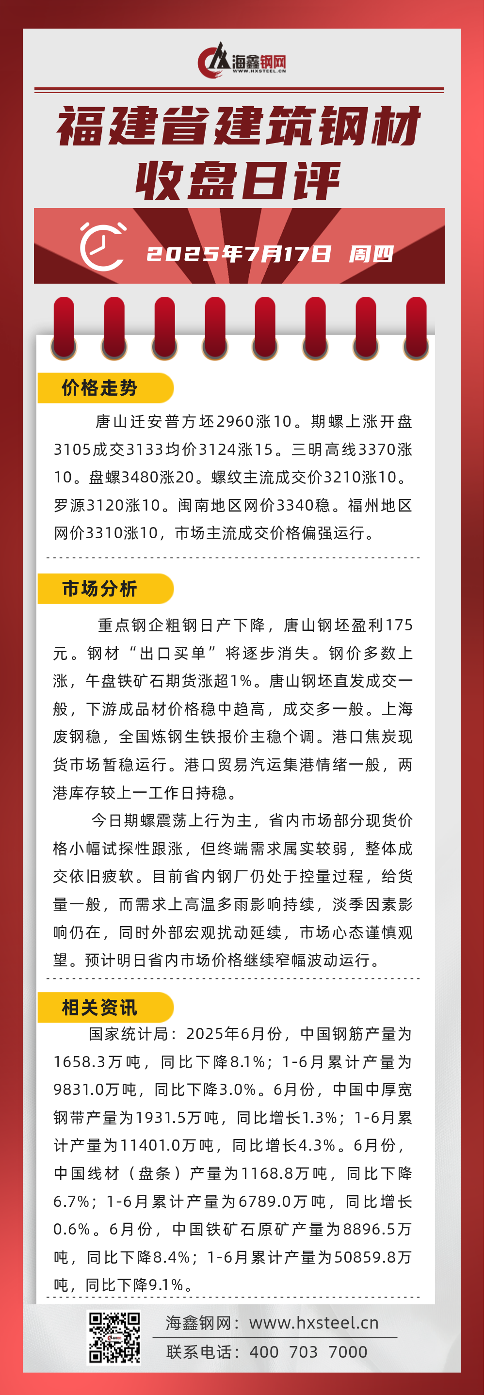 7月17日福建省內(nèi)建筑鋼材收盤日評(píng)
