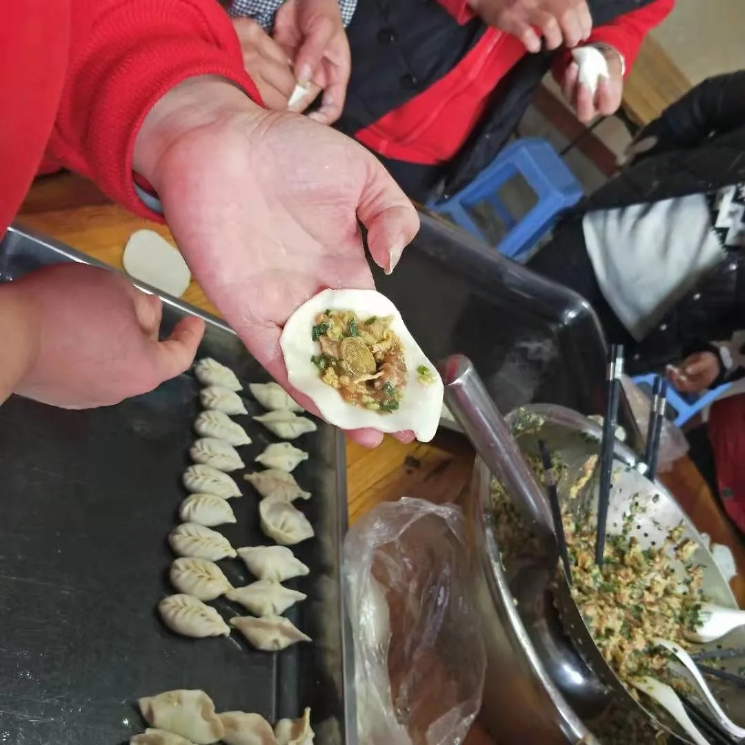 上午公司食堂工作人員就備好了餃子皮、肉餡、白菜、雞蛋、韭菜、硬幣等活動所需材料,下午大家?guī)霞覍冽R聚食堂,挽起袖子,分工有序,各顯身手。有的調(diào)餡,有的打蛋,有的切菜,忙的不亦樂乎,很快就塑造出各類帶有家鄉(xiāng)風(fēng)格的餃子,餃子的形狀也是創(chuàng)意百出,元寶形、耳朵形、月牙形、麥穗形等等,各式各樣。大家圍聚在一起,分享包餃子經(jīng)驗,講述自己家里的過年習(xí)俗及新年愿望,笑語不斷,氣氛和諧,歡聲笑語充滿著整個食堂操作間,手里捏出的每一個餃子都包含著職工間濃濃的關(guān)愛和對新年滿滿的祝福。