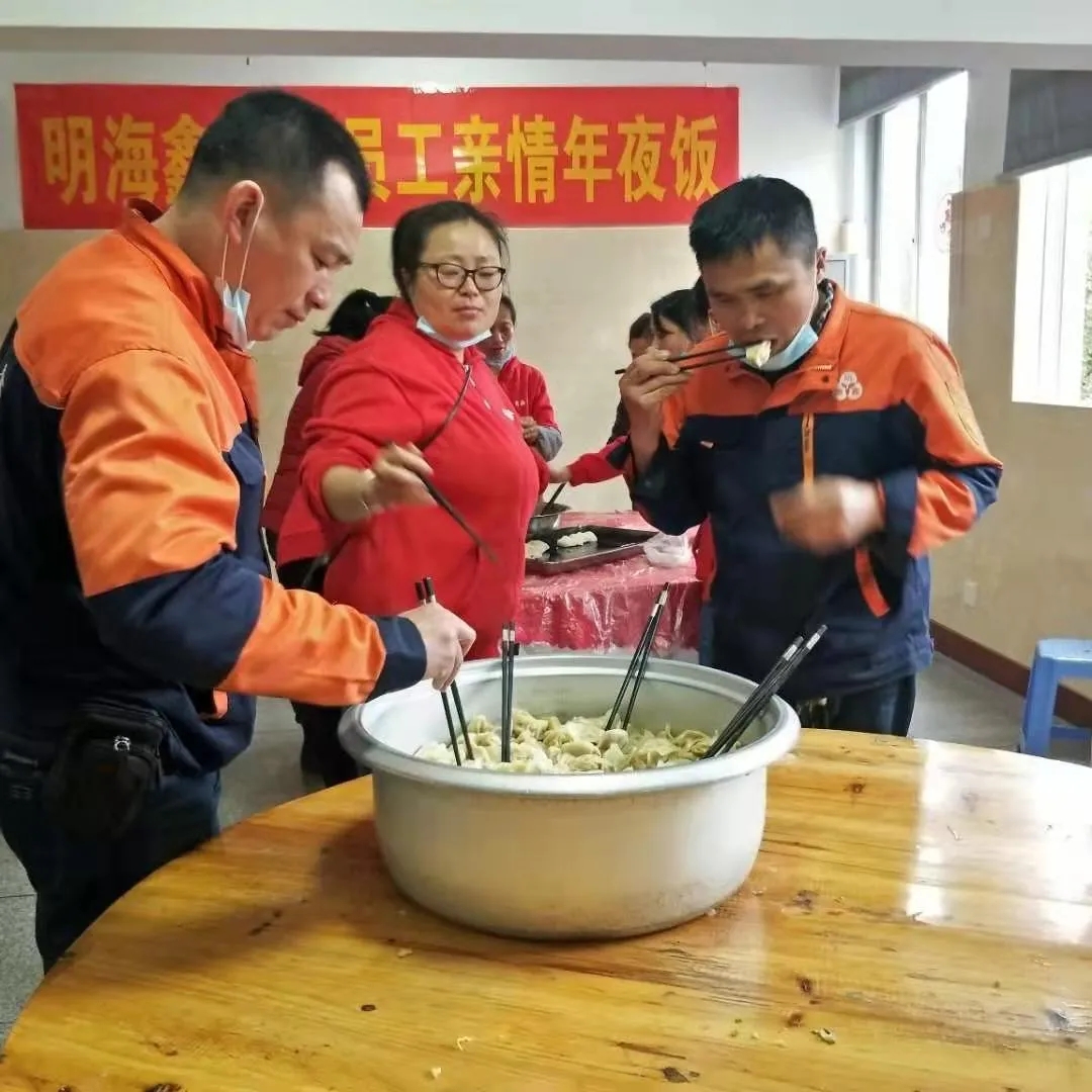 通過此次“迎新春包餃子年夜飯”暖心活動,使公司員工們感受到濃濃的節(jié)日氛圍,體會到明海鑫大家庭的關(guān)心和溫暖,大家共同表達了辭舊迎新、迎祥納福的美好愿望,同時進一步加強了團結(jié)協(xié)作精神,增強了凝聚力。一碗熱氣騰騰的餃子,為這個寒冷的冬日帶來了滿滿的溫情,春節(jié)將至,祝愿大家新春快樂,幸福美滿!